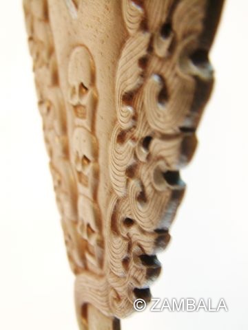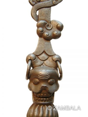 文殊菩薩形象是右手握“智慧劍”,左手持的青蓮花上放置“般若經”。智慧之利劍表示能斬斷種種煩惱。