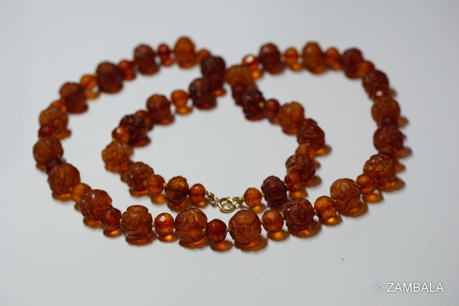 Antique Amber Necklace carved