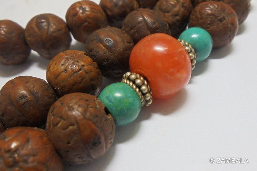 據《守護經》及《瑜伽念珠經》說:“佛部用菩提子珠,金剛部用金剛子珠,寶部用金等諸寶珠,蓮花部用蓮花子珠,羯磨部用種種和合珠。”又近人金安一居士所著《密宗輯要》一文說:“修增法用琥珀珠,修息法用水晶珠,修壞法及長壽法用珊瑚珠,修誅法用人頭骨珠,修觀音法用菩提子珠,修一切法均可用鳳眼菩提子珠