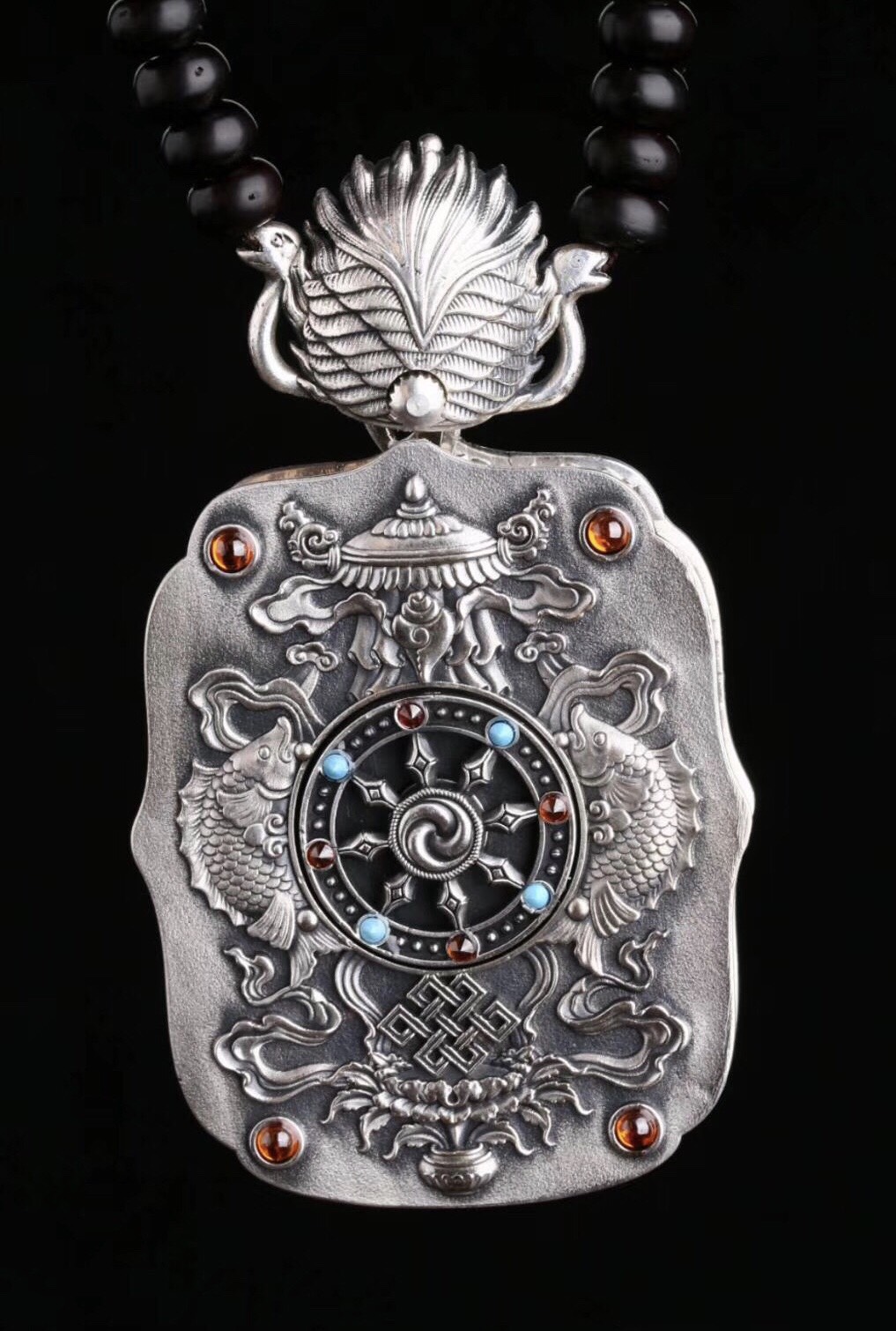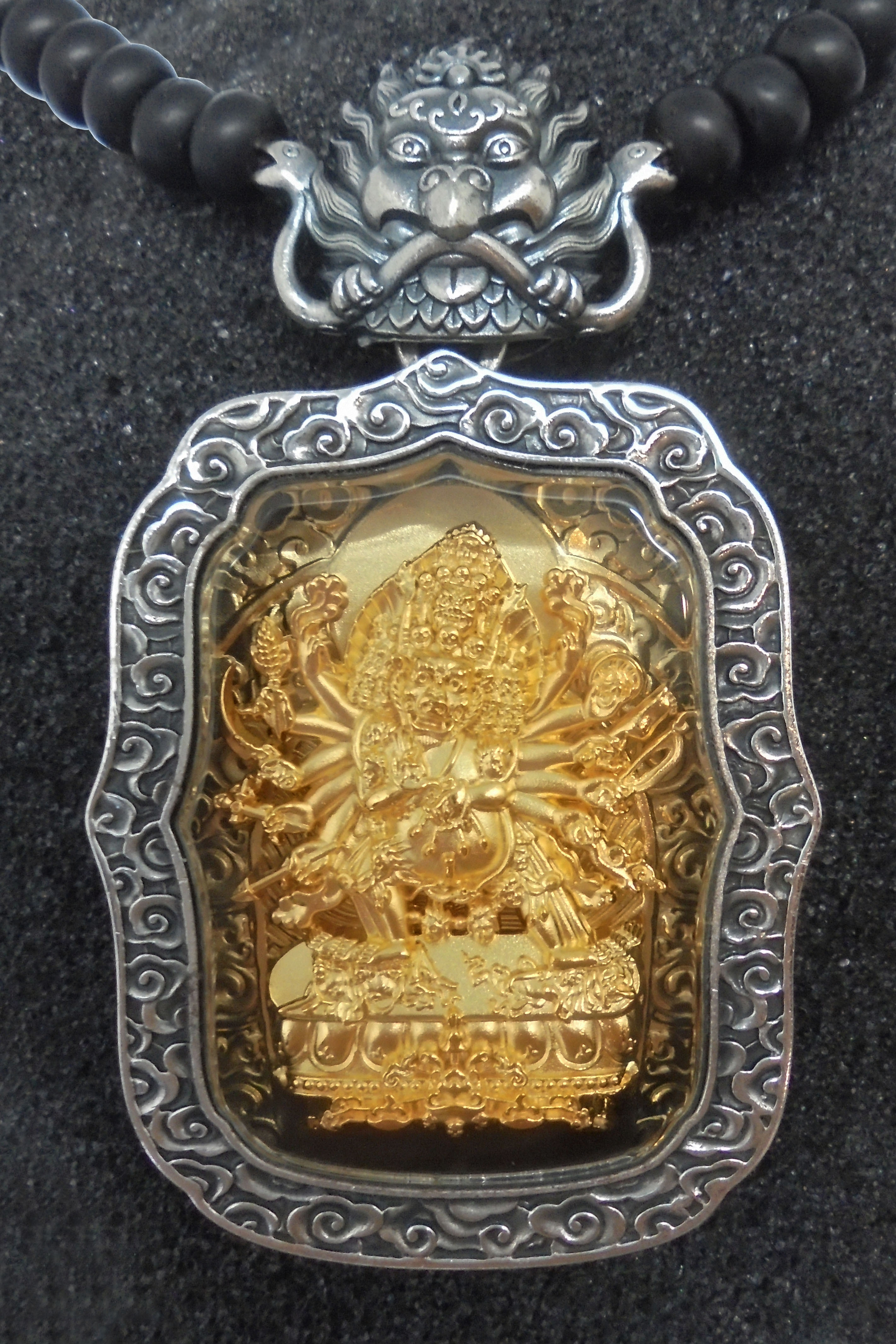 大威德金剛/八吉祥總集 精雕純銀鍍金鑲寶石佛牌