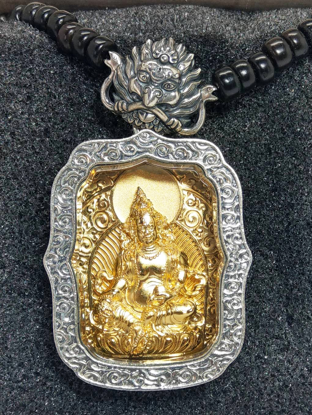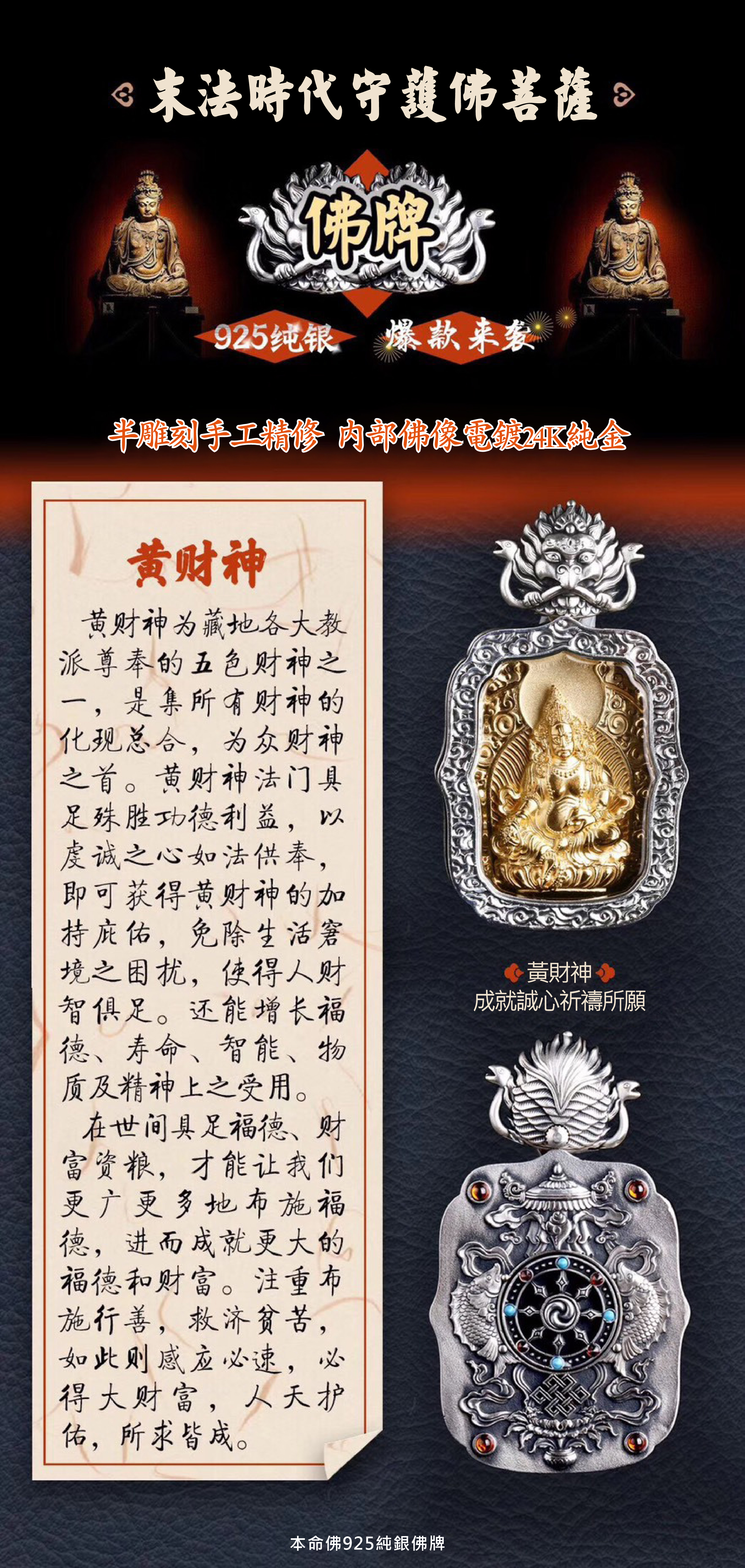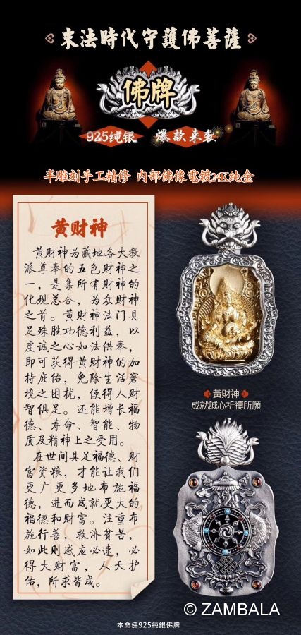 | 精雕佛像,黃財神,(銅鍍金)鑲寶石,純銀 |