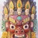 瑪哈嘎拉是藏傳佛教中的重要護法神,屬於「忿怒尊」(wrathful deity),其面具以兇猛、威嚴的形象呈現,象徵摧毀無明、煩惱與魔障的力量。他的形象通常帶有多頭、多臂、火焰環繞,展現強大的威力和保護力,守護佛法與修行者。