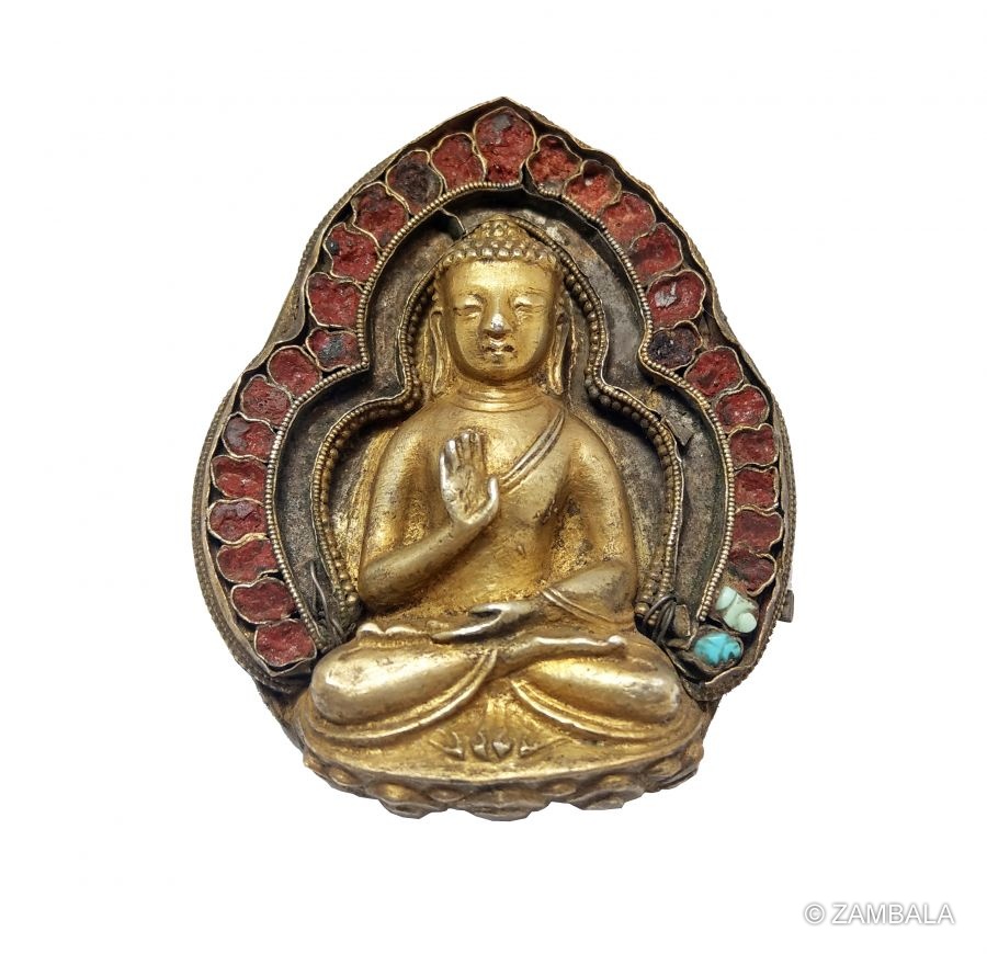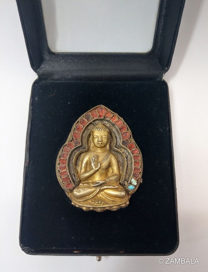 大日如來 鑲珊瑚鎏金佛像