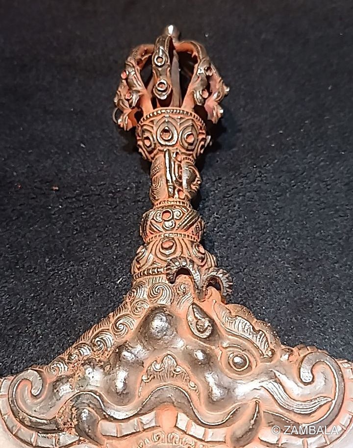 手柄為一金剛杵,下鑲一鋼鐵制之彎刀。其表義為摧毀一切束縛。
