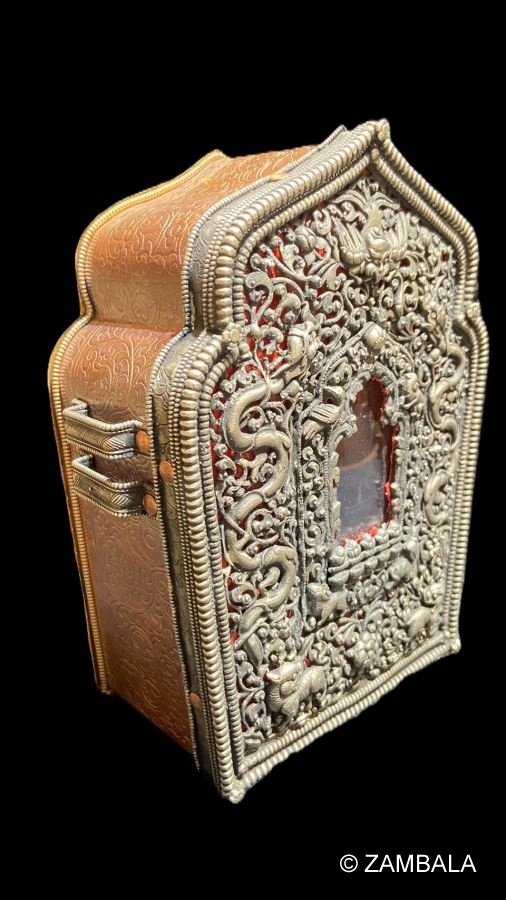 - 嘎烏的外觀通常飾有精美的金屬雕刻、寶石或綠松石,展現了藏族工藝的精湛技藝,也體現了佩戴者的身份或地位。